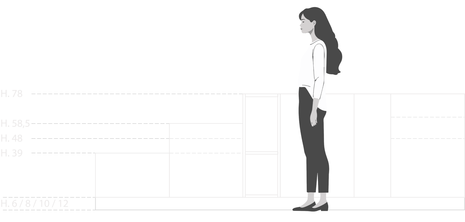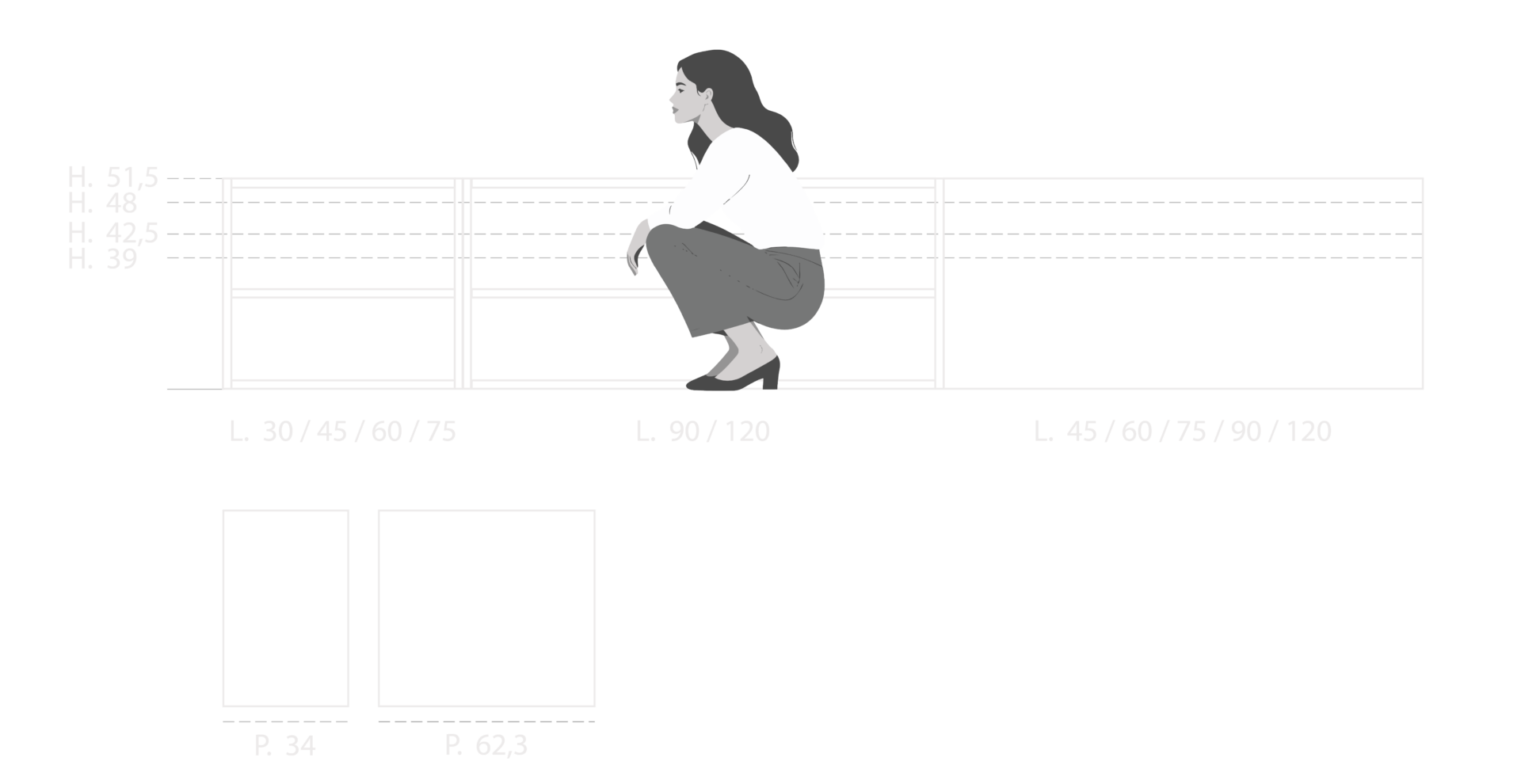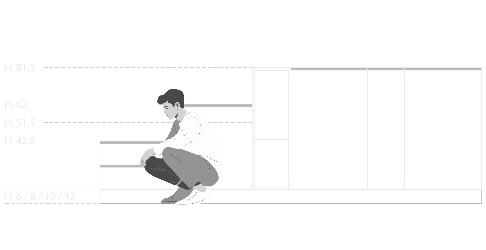 Le basi sono la parte inferiore del Sistema 22. Vengono progettate in moduli, così da permettere una composizione diversa e unica per ogni cucina, nel modo più funzionale alla vita quotidiana.